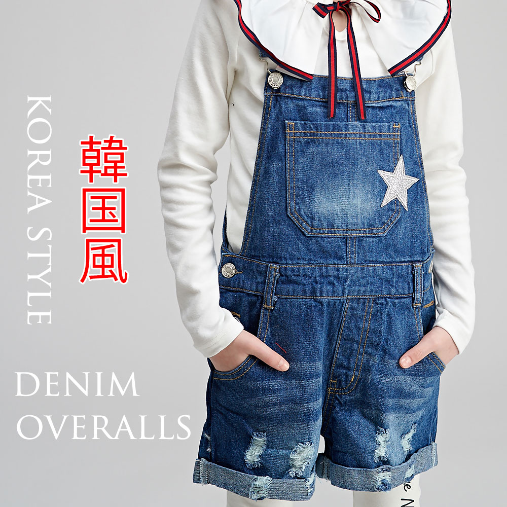 夏 キッズデニムパンツ 韓国ファッション ジュニアサイズ デニムサロペット キッズ ファッション ジュニア サロペットショート デニム小学生