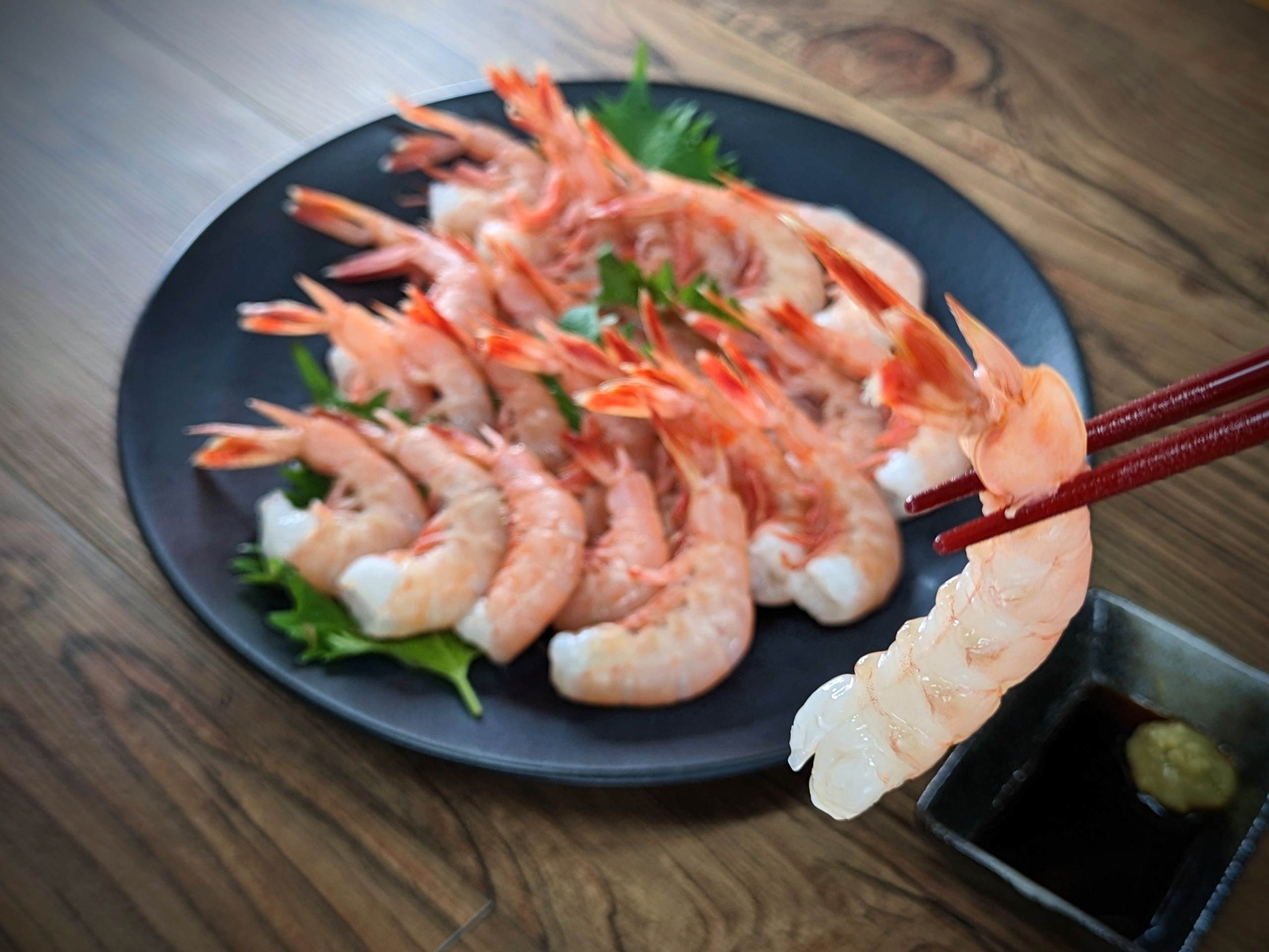 刺身用の『ひげながエビ』です。解凍後お召し上がりください。