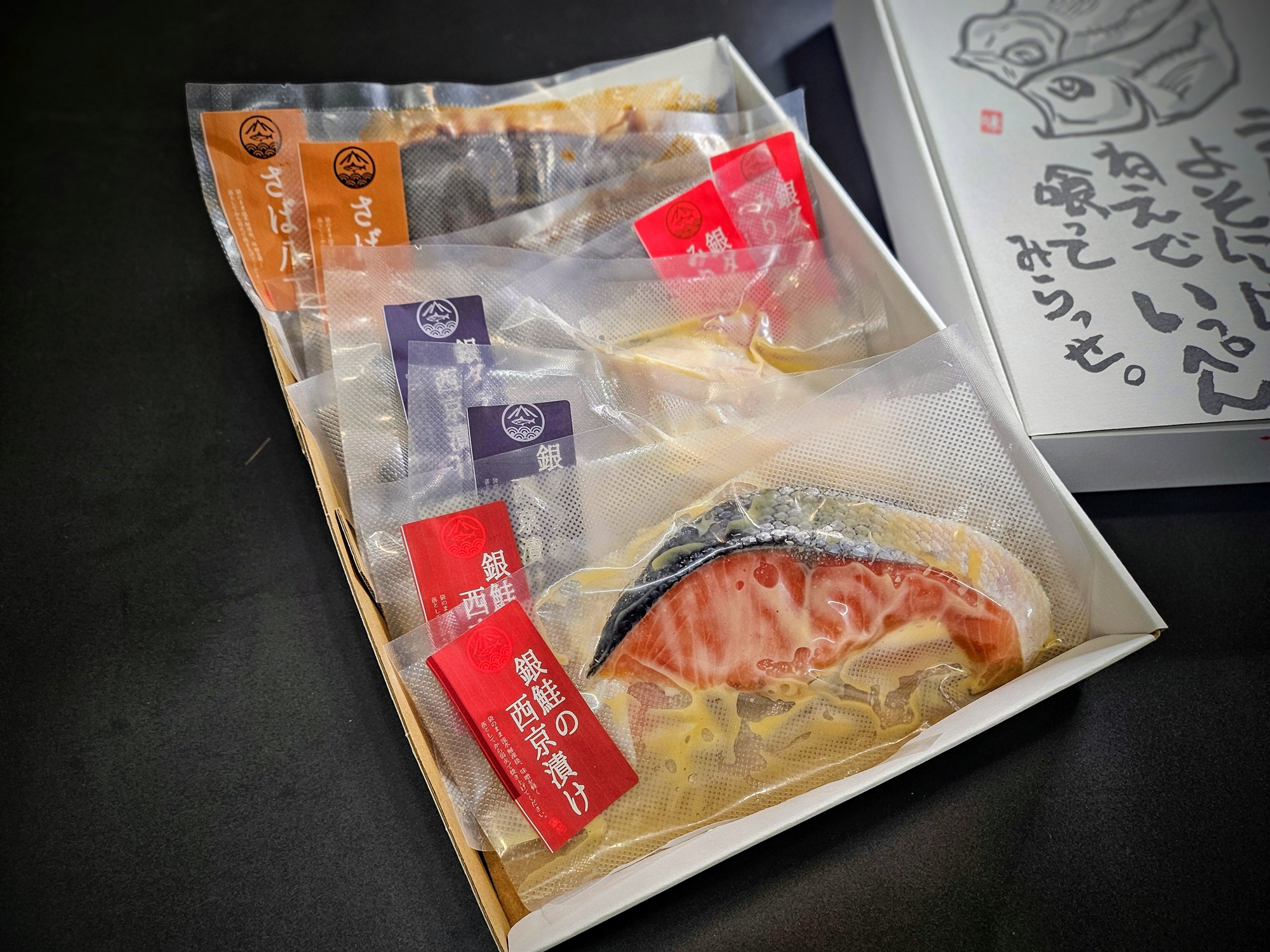 銀ダラ西京漬け×2、銀ダラ味醂漬け×2、サバ八丁味噌漬け×2、銀鮭西京漬け×2