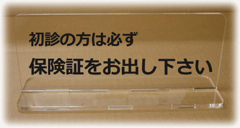 受付プレート カウンターサイン スタンドプレート 250mmx100mm 【保険証をお出しください】