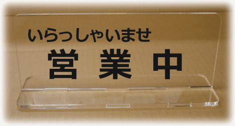 受付プレート カウンターサイン スタンドプレート 250mmx100mm 【営業中】