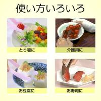 ![]() ![]() | 形が崩れやすい豆腐や寿司など、 上手に食べられます。 なお、掴むと先端の下部が閉じるので、 食べ物が取りやすくなります。 特に、器に残った細かいものを綺麗に 食べられます。 |