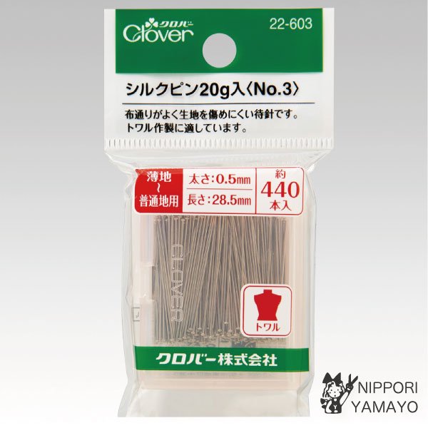 待ち針 マチ針 クロバー シルクピン 20g入 No.3 薄地 普通地 440本入り 裁縫道具