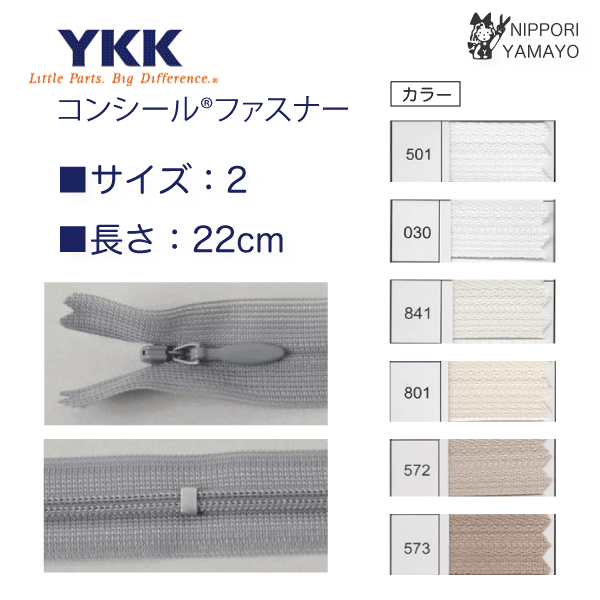 YKK ファスナー コンシールファスナー 22cm アイボリー系 ベージュ系