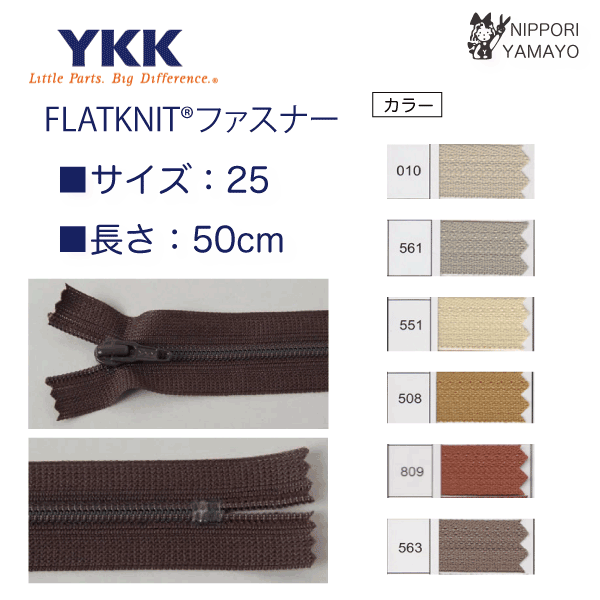 YKK ファスナー フラットニットファスナー 50cm ベージュ キャメル