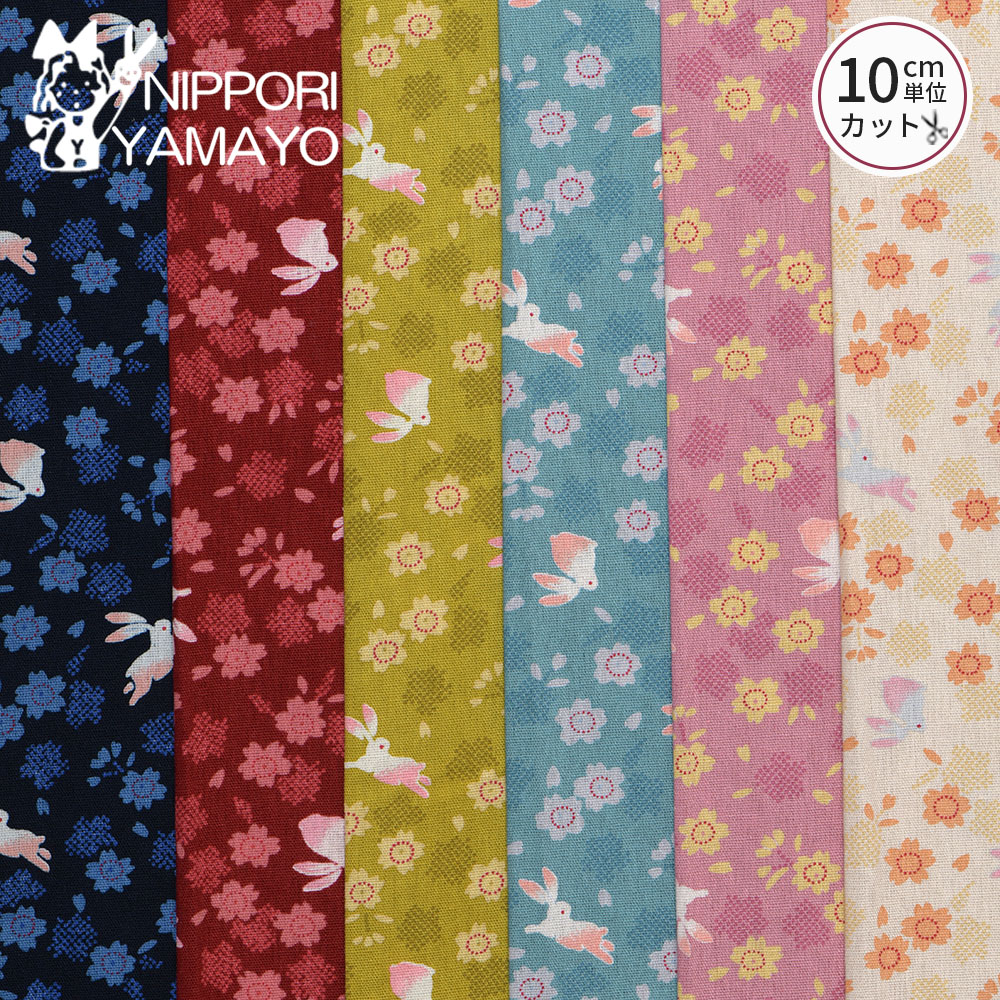和柄 生地 綿 桜柄 和調シーチングプリント3060 #27 桜とうさぎ柄 生地巾110cm 10cm単位販売 布 布地