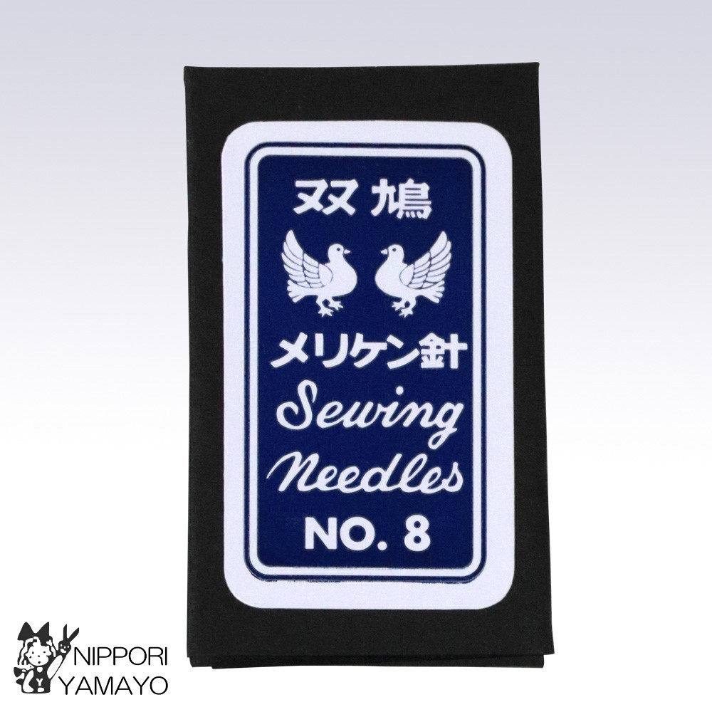 洋裁に使用される針で、和裁針に対してメリケン(アメリカンの日本語訛り)針と呼ぶようになった様です。ニッケルメッキ加工ではなく、磨き仕上げをしています。布通りが良く使いやすいぬい針です。薄手の木綿やウール地などに。洋服針と呼ばれ、主にソーイングに使用される針。各種手芸にも使われます。