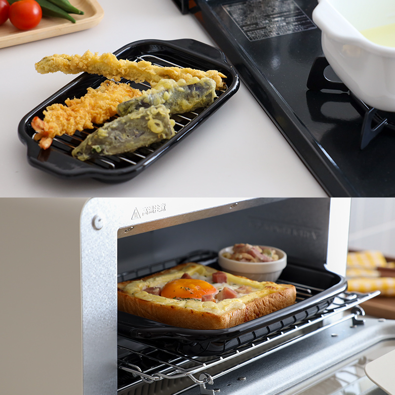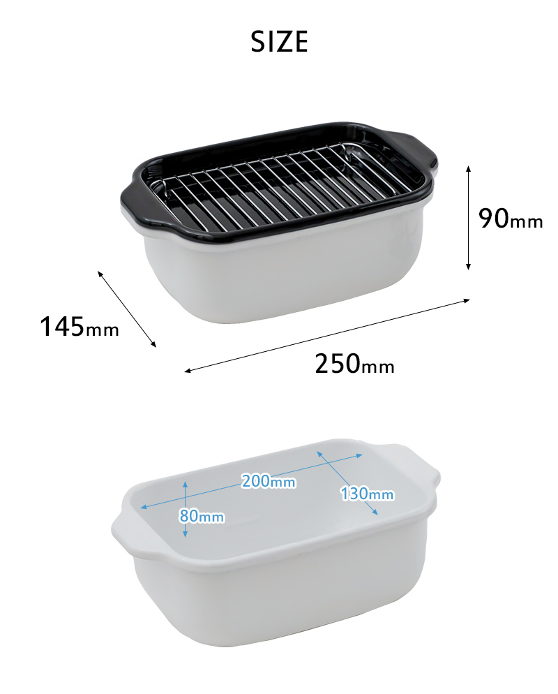 揚げ物の下ごしらえをしたり、油をきるための受け皿としても使えるスノコ網とバット付き。