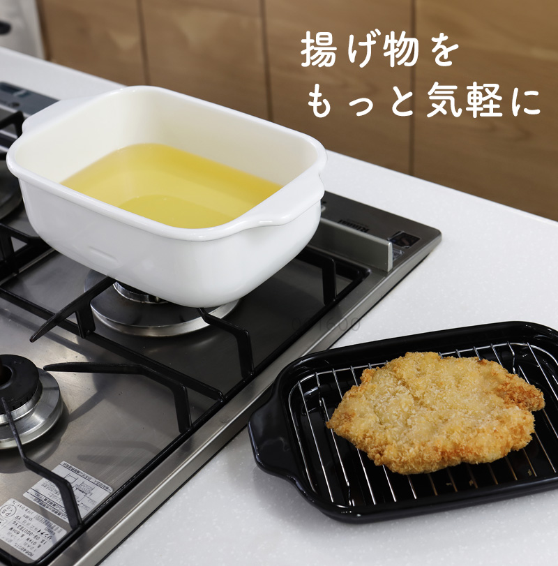 おうちでの揚げ物をもっと気軽に楽しめる富士ホーローの「角型天ぷら鍋」。