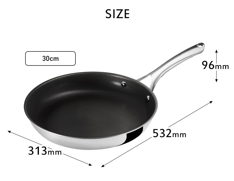 コーティングではない為、ノンスティック性能は半永久的に劣化することなく、長くお使いいただけるフライパンです。