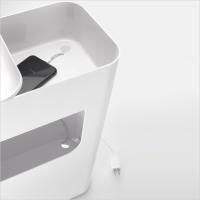 収納部分にはそれぞれコードホールが開いています。スマートフォンの充電ケーブルを通しておいて、スマホの指定席として便利につかう使い方や、器機や配線がごちゃごちゃして隠しておきたいルーターなどの収納BOXとして使っても。