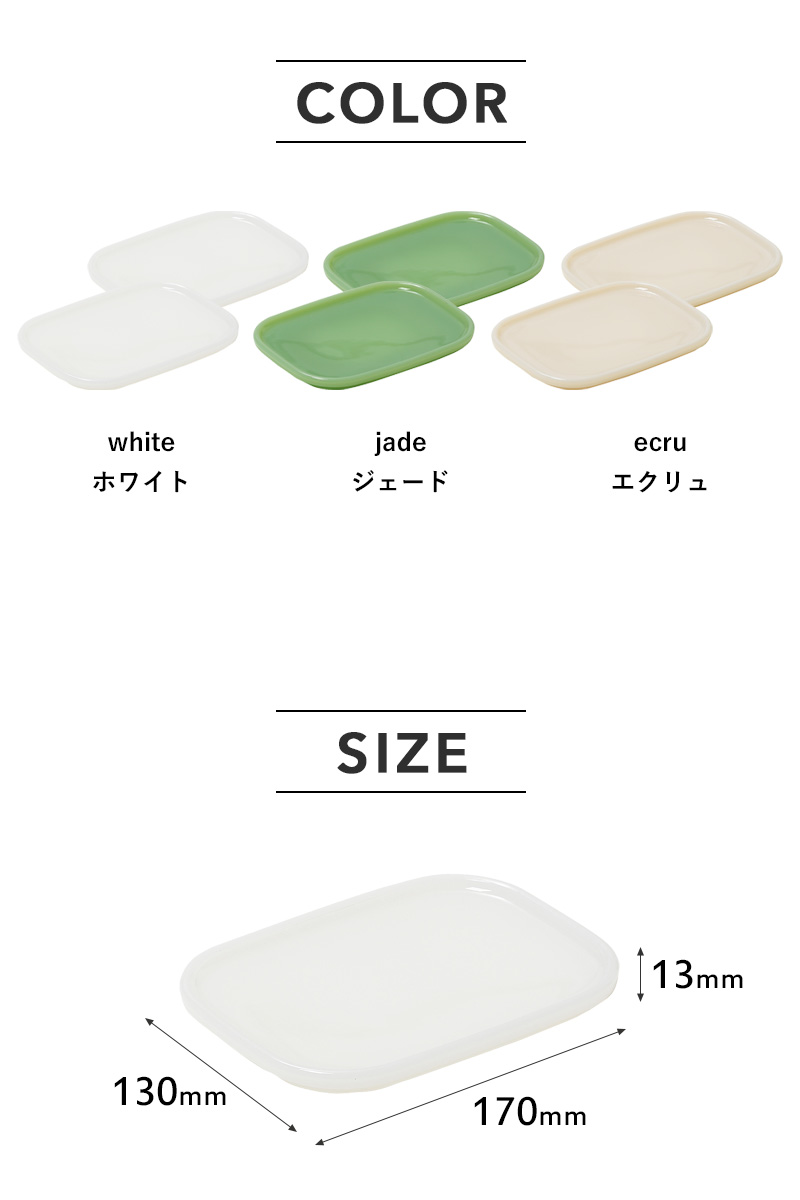 「square plate / 2pcs」は17×13cmの四角いプレート2点セットのパッケージ。テーブルに並べるのに収まりが良く、取り皿やデザート皿に使いやすいサイズ感になっています。