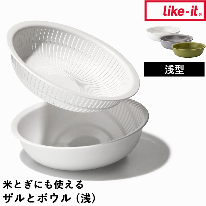 商品名 | like-it 米とぎにも使えるザルとボウル(浅) |