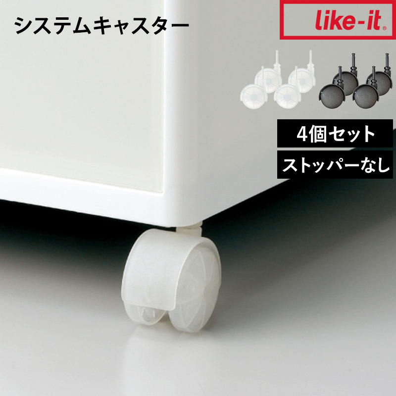 配置を変えたい時や床掃除の際の移動がとっても楽になる、ライクイット専用のシステムキャスター。