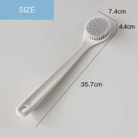 | ほどよいカーブで、今まで手では届きにくかったところにも届きます。 柄の先端には突起が付いており、滑り落ちにくいようストッパーとして支えてくれます。 かためのブラシでしっかり洗えるので、洗い心地スッキリ爽快。軽くて使いやすいボディブラシです。 |