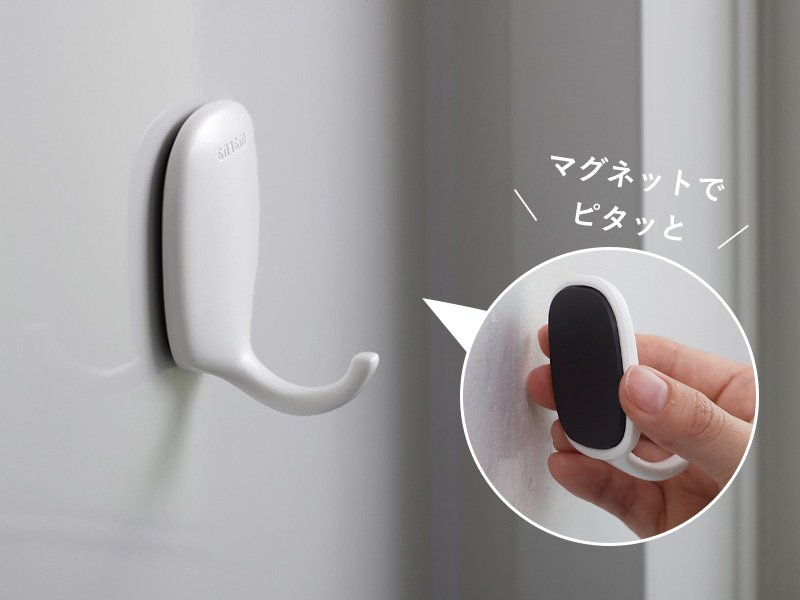 収納にはかかせない便利なフック。浴室の壁面に自分の好きな位置に設置ができたら便利ですよね。それを叶えてくれたのが、マグネットの力で壁面収納を叶える「掛けやすいマグネットフック」。