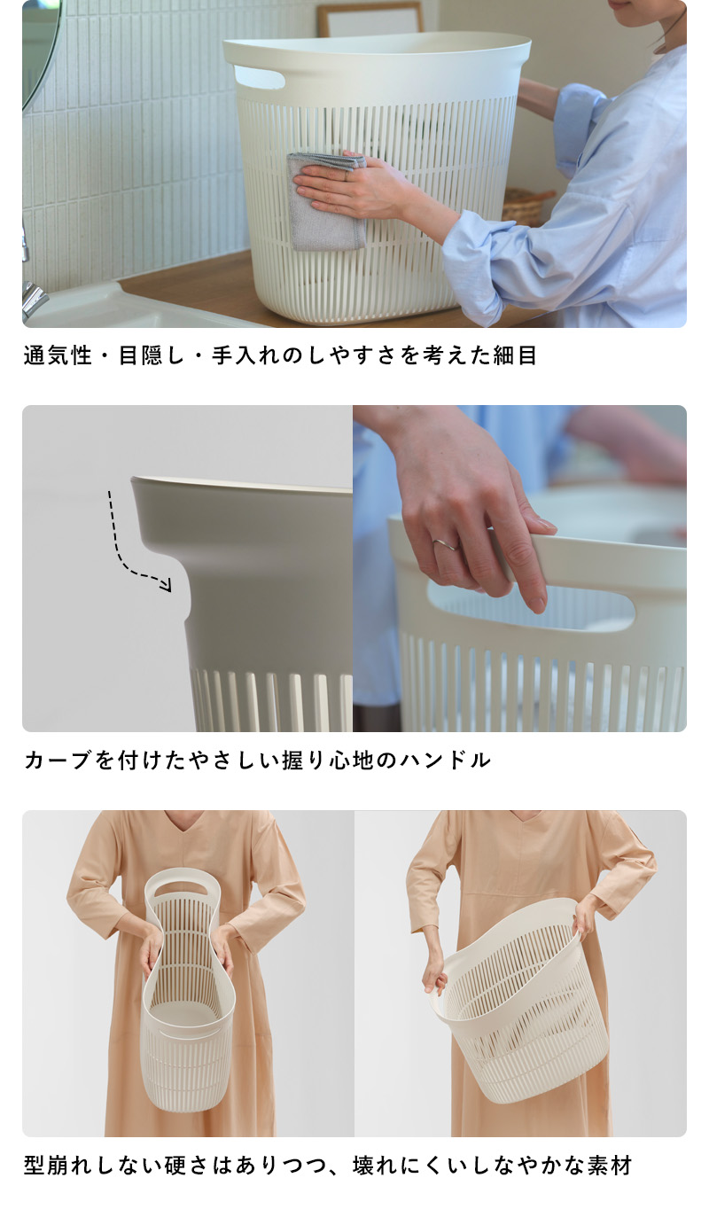 使い心地はもちろん、おうちに馴染むデザインとしてマーナが開発したランドリーバスケット。
