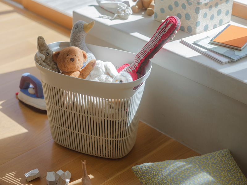 お子様のおもちゃやリビングでの一時置きなど、収納バスケットとしてもご活用いただけます。