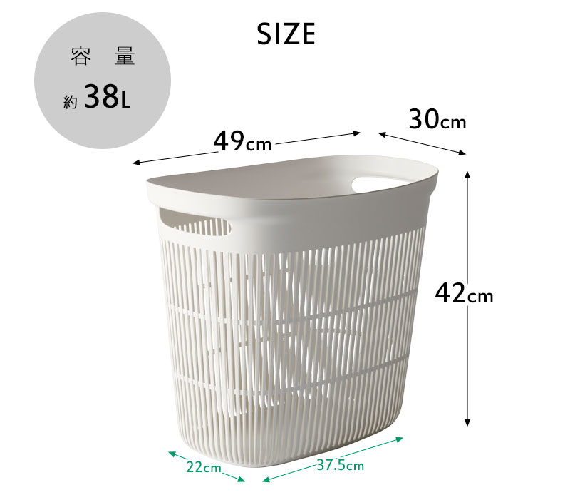 容量はしっかりと約38L。白・色物・タオルなどの仕分けに複数使いもおすすめです。