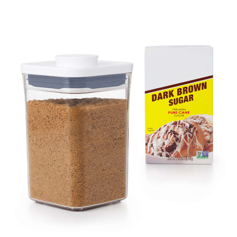 片手でボタンを押すだけで簡単に開閉、そしてしっかり密閉できるオクソーのポップコンテナ2。使い勝手の良いスクエア形状の容器は省スペースで収納でき、同じサイズはだけでなく、サイズ違いでもスタッキングが可能。お砂糖700g、茶葉やコーヒーなどの乾燥食品をおしゃれにディスプレイしながら保存できるフードコンテナです。