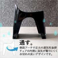 箱型のバスチェアにありがちな気になるポイント、それはチェアの内側に籠る湿気。入浴中にチェアの内側に湿気が溜まり、そのままにしておくと水アカやカビが発生する原因になります。ヒューバスは背もたれ付きの箱型という安定感のあるデザインで脚部に大きくアーチをつけることで 湿気を逃がし使用後の自然乾燥を促す仕様になっています。