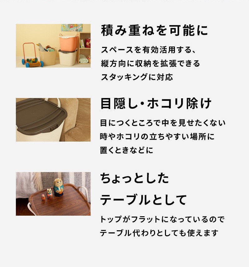 また、中身の目隠しや、塵・埃の進入もしっかりガード。上部がフラットなので、テーブルとしても活用できます。