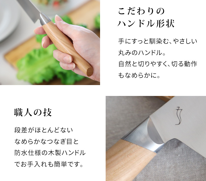 お手入れがしやすく、女性の小さな手にも心地よくなじむ包丁が欲しい。できればキッチンのインテリアに映える、美しい道具がいい。
