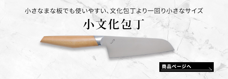 kasane文化包丁は小さなまな板やカッティングボードにも使い易い、大きすぎず小さすぎず、事足りるサイズ感で、お野菜、お魚、お肉まで対応できる万能包丁です。