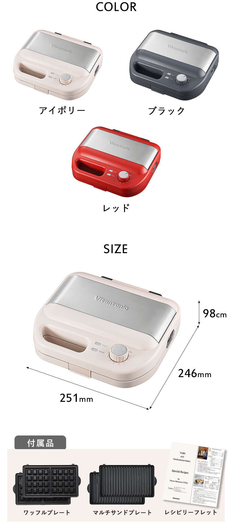 | 商品名 | Vitantonio ワッフル&ホットサンドベーカー VWH-600-IV/WH-600-R/VWH-600-K |