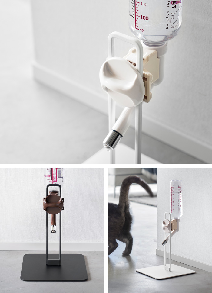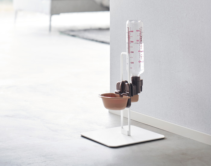 シンプルなデザインで、どんなテイストの室内でも合わせやすいペット用品シリーズ。給水器をスタンドに取り付ければ、室内を移動することが可能に。大切な愛犬、愛猫の水飲みポイントを作ってあげられます。