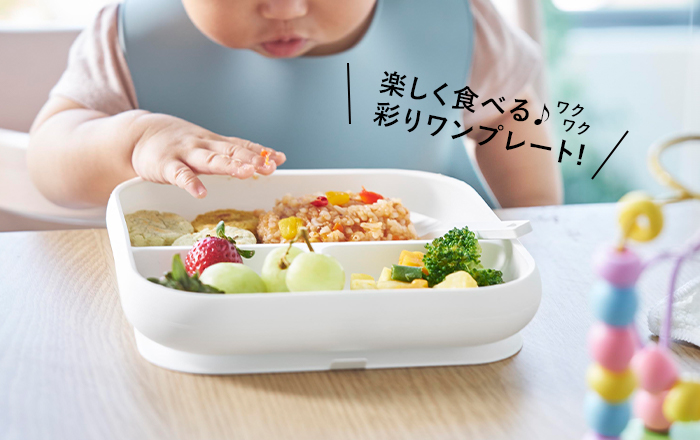 カラフルなワンプレートは見た目も楽しく、お子さまの食べる意欲も引出しやすくなります。視覚的にどこに何があるかが一目で分かるため、小さなお子さまでも食べやすく、食事の時間がスムーズになる、大人にも子供にも嬉しいワンプレートトレーです。