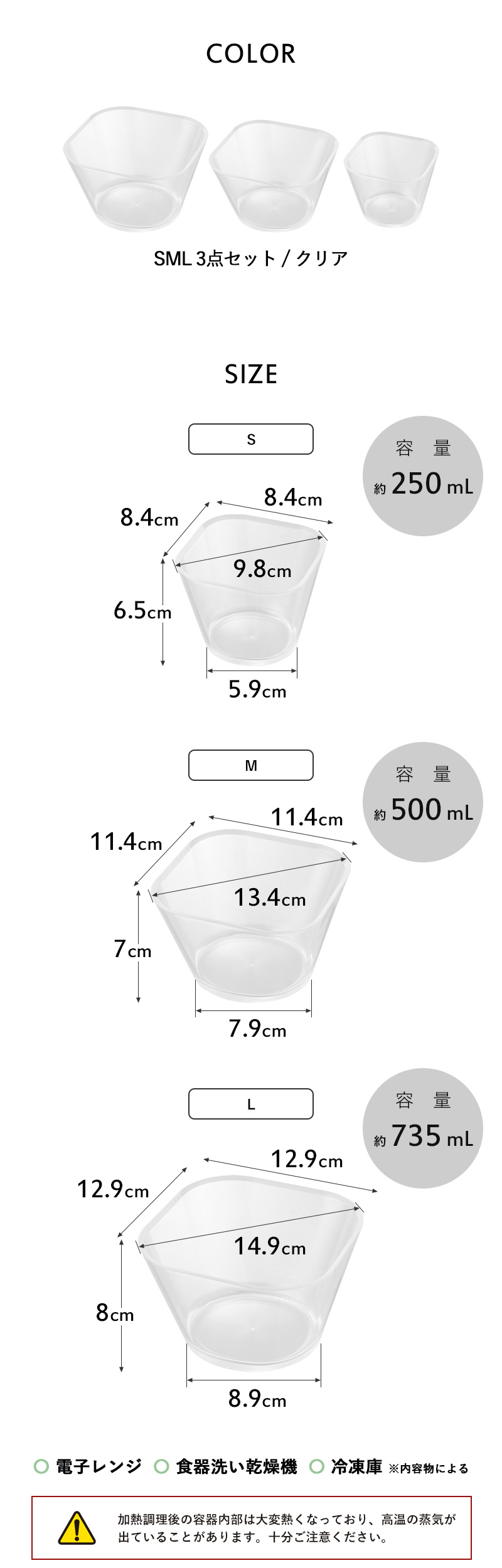 | 備 考 | 日本製 電子レンジ可、食器洗い乾燥機可、冷凍庫可 ※内容物による |
