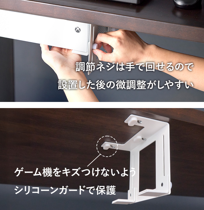 デスク下に取り付けて収納できるゲーム機専用収納ホルダー。
