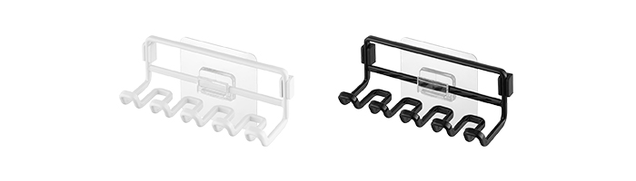 設置は壁面に貼り付けたフィルムフックに差し込むだけ。 光沢のある平らな面のお好みの位置に取り付けられます。