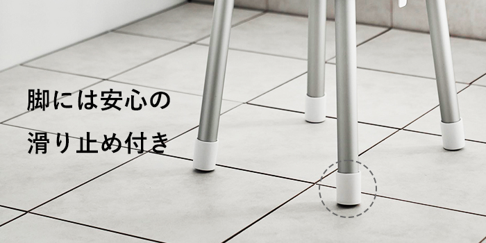 丈夫なアルミ製の脚と、滑り止め&傷つき防止のパーツ付きで、家族みんなが安心して使える設計です。
