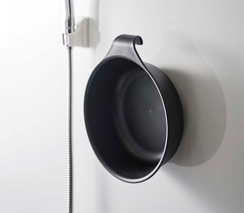 湯おけは物干し竿、タオルバー、シャワーフックなどに引っ掛けて収納する事はもちろん、背面に埋め込まれたマグネットでそのまま壁にピタッと収納する事もできます。