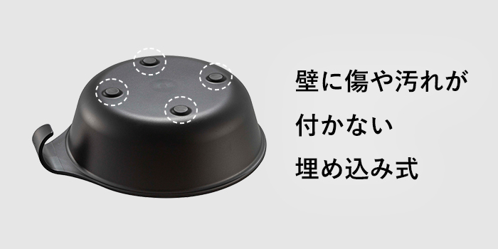 マグネットは底面に埋め込まれているので壁に貼り付けても傷や汚れの心配がありません。
