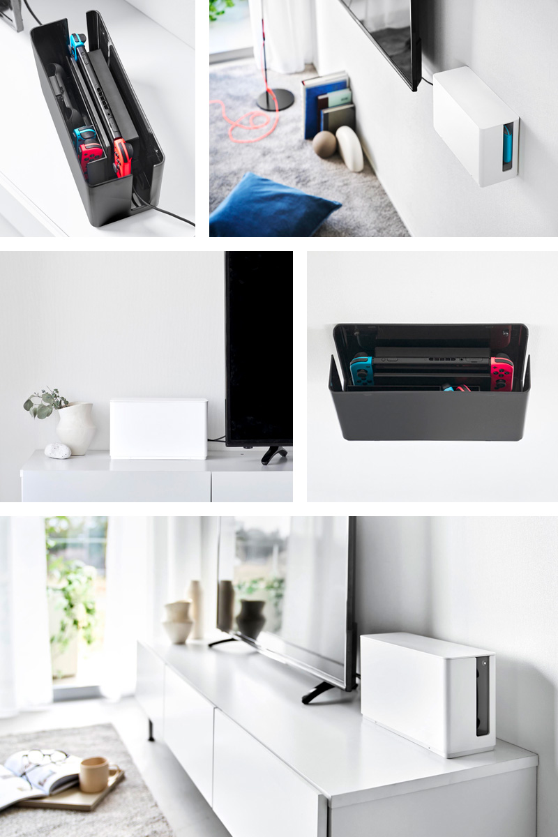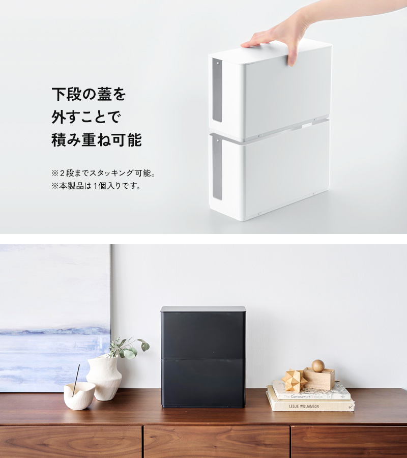 また、蓋付きのケースなのでホコリやゴミが内部に入りにくく衛生的。テレビやモニターの後ろに隠せるコンパクトなサイズなのも特徴です。