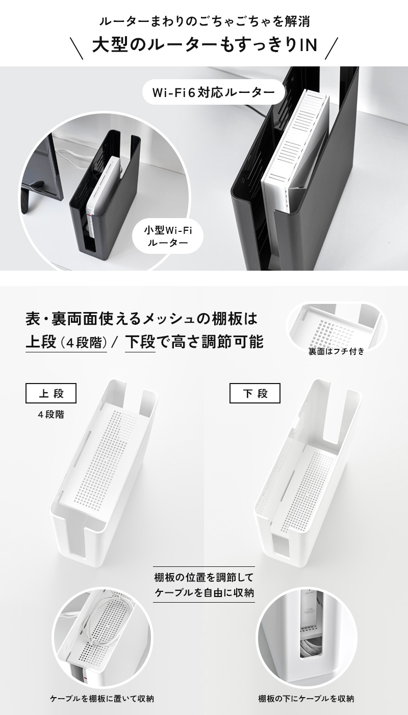 ※無線LANルーターを収納する場合、環境によっては通信速度に影響が出る場合があります。