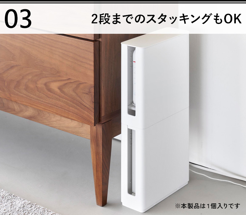 | サイズ | 本体:約 幅24.2 × 奥行き8.7 × 高さ23.9cm 収納部内寸:約 幅23.4 × 奥行き7.9 × 高さ22.2cm スリット部内寸:約 奥行き3 × 高さ19.4cm |