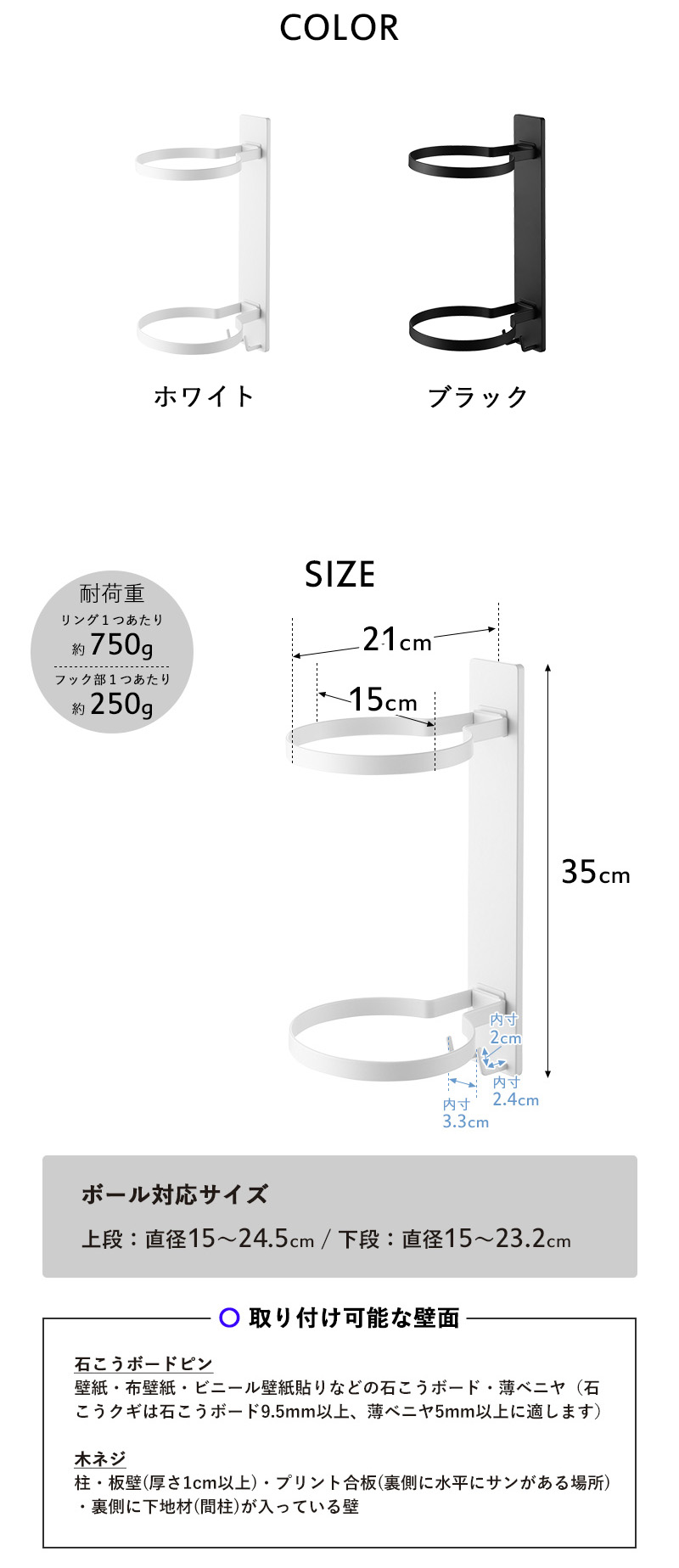 | 商品名 | tower 壁付けボール収納 タワー 2段 |