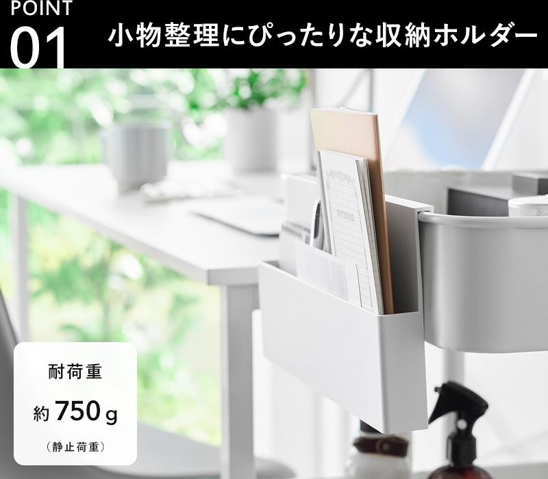 ファイルボックスやワゴンに引っ掛けて小物の収納スペースを新たにプラスできるスリムな収納ホルダー。