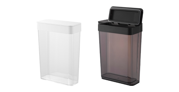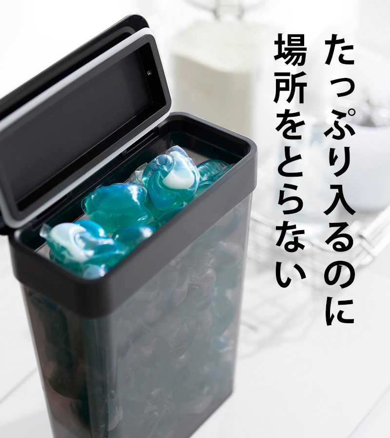 蓋にはパッキンがついているから、ニオイ漏れや乾燥・湿気を防ぎます。棚や隙間に収納しやすい奥行わずか8.6cmの省スペース設計。洗濯洗剤ボールはもちろん、大容量の粉末洗剤の収納にもおすすめです。