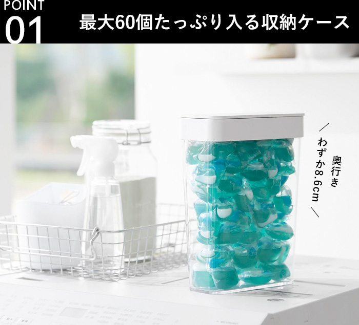 洗濯洗剤ボールがたっぷり入る、大容量&スリムな収納ケース。