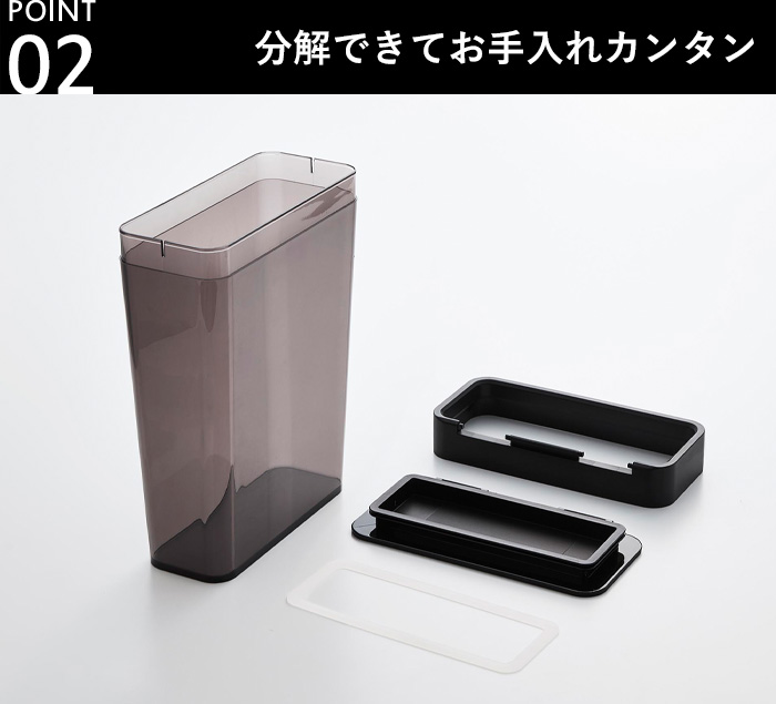 | サイズ | 約 幅18.5 × 奥行き8.6 × 高さ25cm (容器内寸:約 幅15.8 × 奥行き5.6 × 高さ23cm ふた開閉部内寸:約 幅17 × 奥行き6.8cm) |