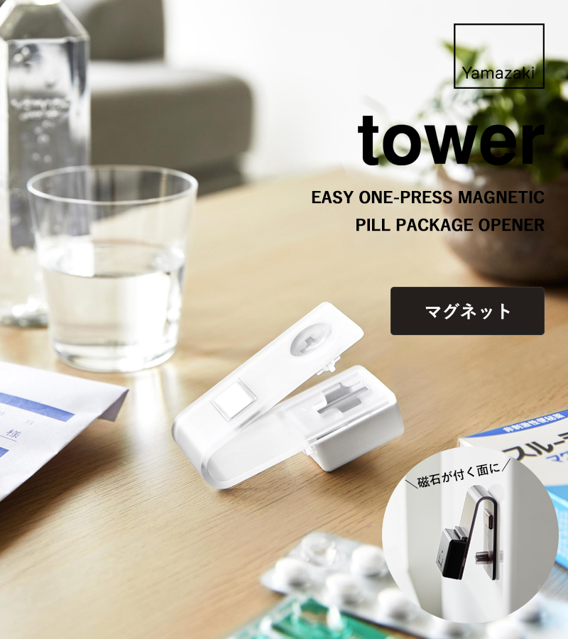 | 商品名 | tower 山崎実業 押すだけ簡単マグネット錠剤オープナー タワー |