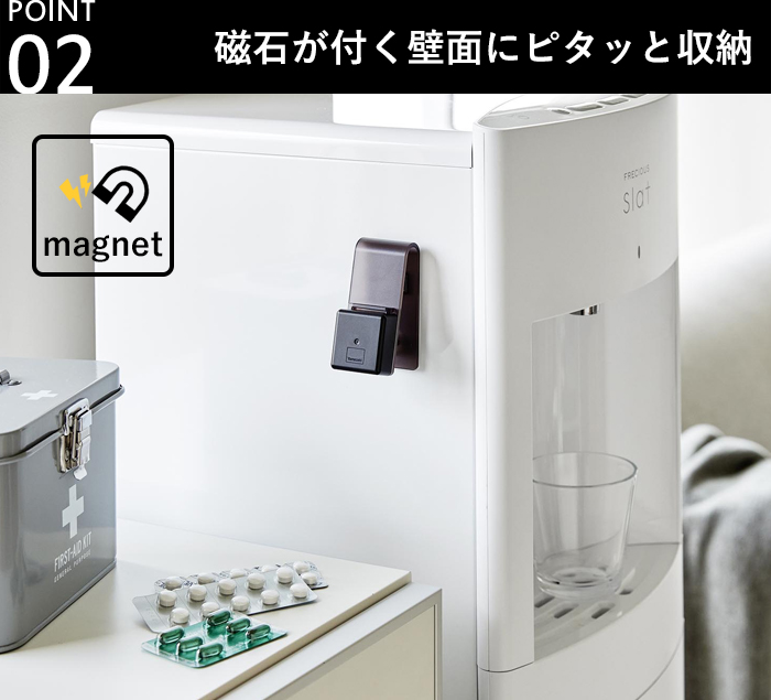 冷蔵庫の側面やウォーターサーバーなど、良く目につく場所や薬を飲む場所においておけばいつでもサッと使うことができます。