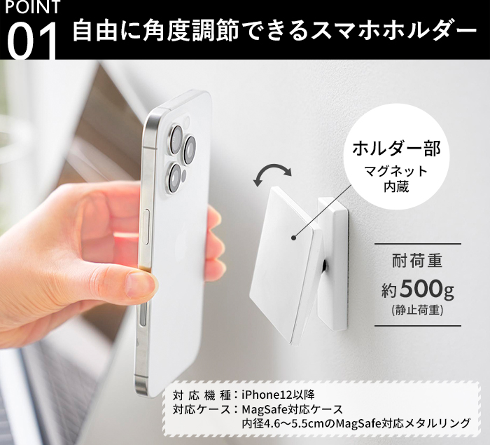 ※MagSafe対応機種、または対応ケースをご使用ください。非対応の場合は固定できません。
