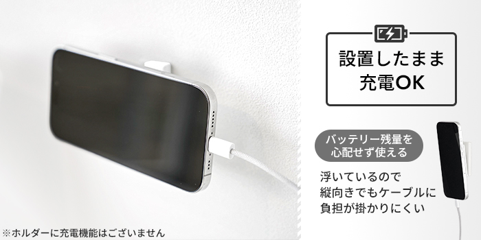 また、ホルダーにセットしたまま充電ケーブルを差し込める設計のため、バッテリー残量を気にせず使用できるのも魅力です。