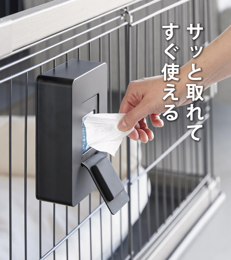 ペットケージに直接取り付けられるシリーズから、欲しいときにパッと使えるウェットティッシュケースが登場。
